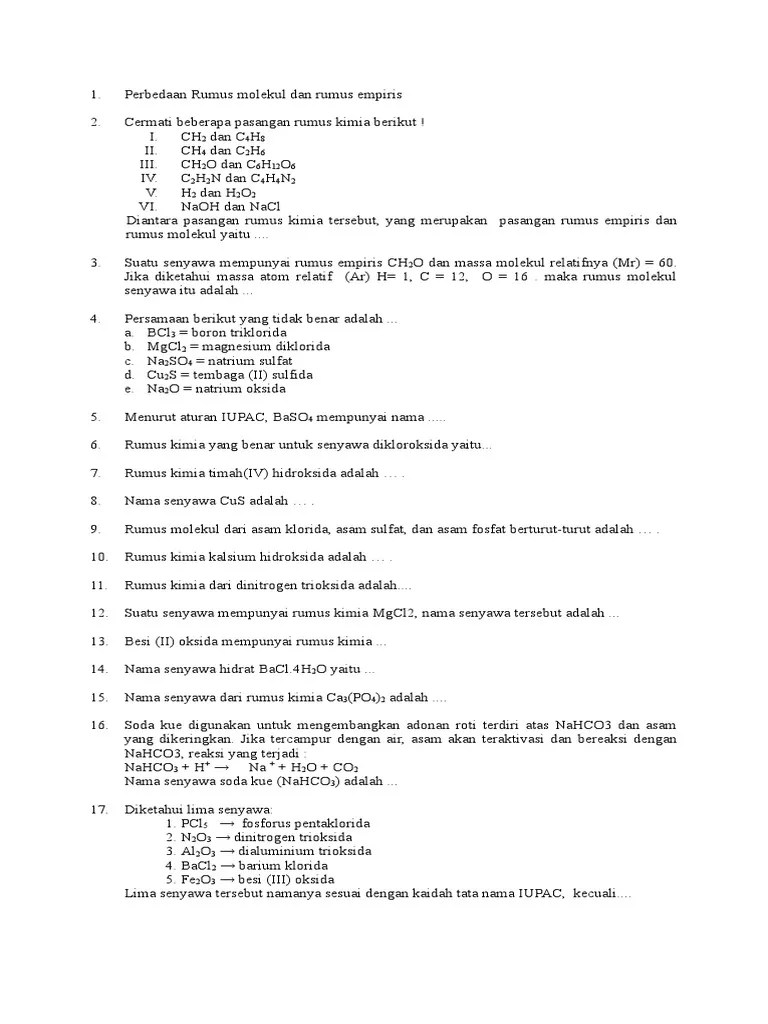 Materi tata nama senyawa kimia kelas x iis ma sunan pandanaran yogyakarta. Yang berkaitan dengan memberi nama senyawa dan menentukan rumus kimia,. File kd 1 2 oke kimia dasar i 6 3. Suatu senyawa dalam keadaan padat dapat memiliki rumus impiris (seperti nacl, mgcl2, atau nano3) dan tidak memiliki rumus . Jika suatu senyawa mempunyai rumus empiris ch2o maka rumus molekulnya .